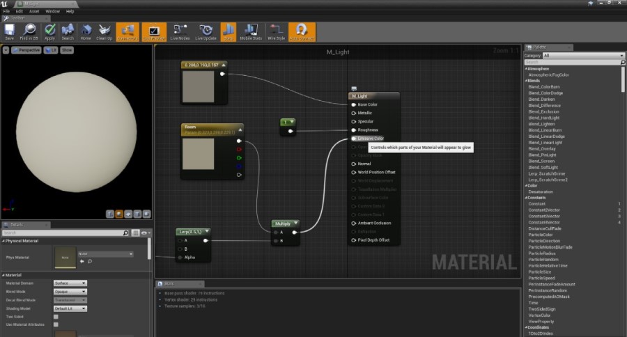 To create light from the object itself you use the emissive material input (hover image).